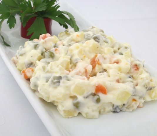 Салат из куриного филе с морковью и горошком