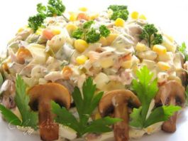 Диетический салат с курицей и грибами: можно даже на ночь!
