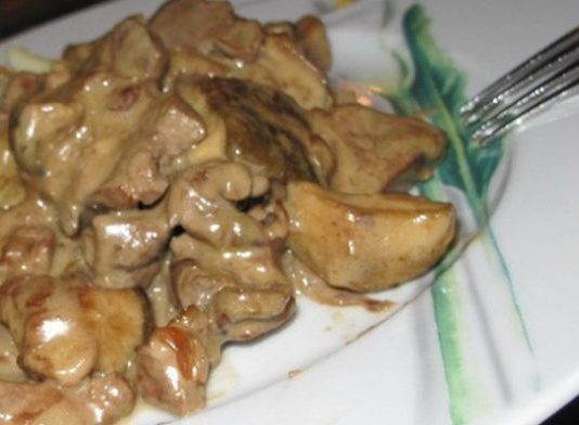 Куриные сердечки в сырном соусе
