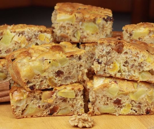 Постный пирог с яблоками, орехами и сухофруктами
