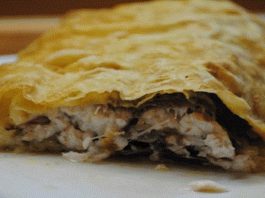 Блинный пирог с курицей и грибами